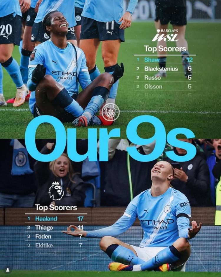 哈兰德17球+卡蒂嘉·肖12球,曼城男女足球员均领跑联赛射手榜